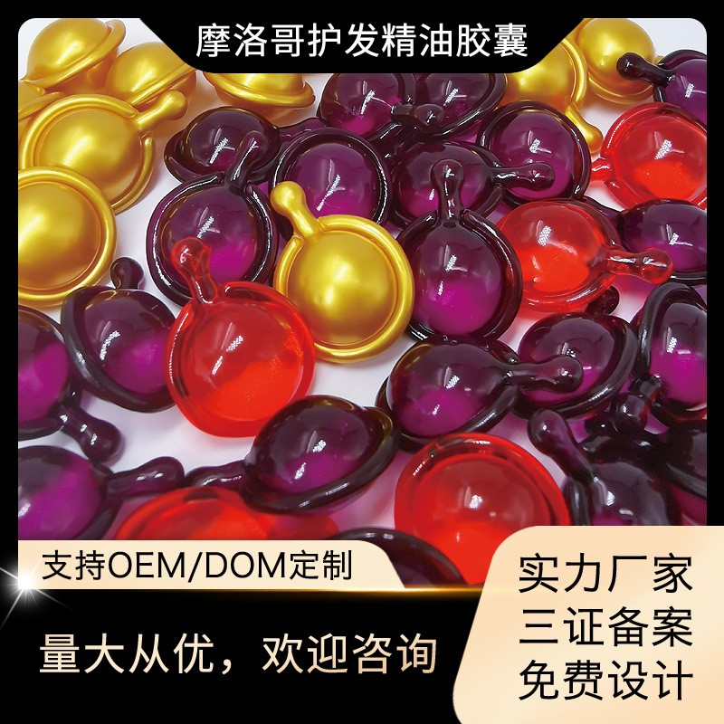 广州市柏俪卡化妆品有限公司发布的摩洛哥护发精油胶囊柔顺烫染受损头发免洗防毛躁静电oem贴牌,代工智造图集库