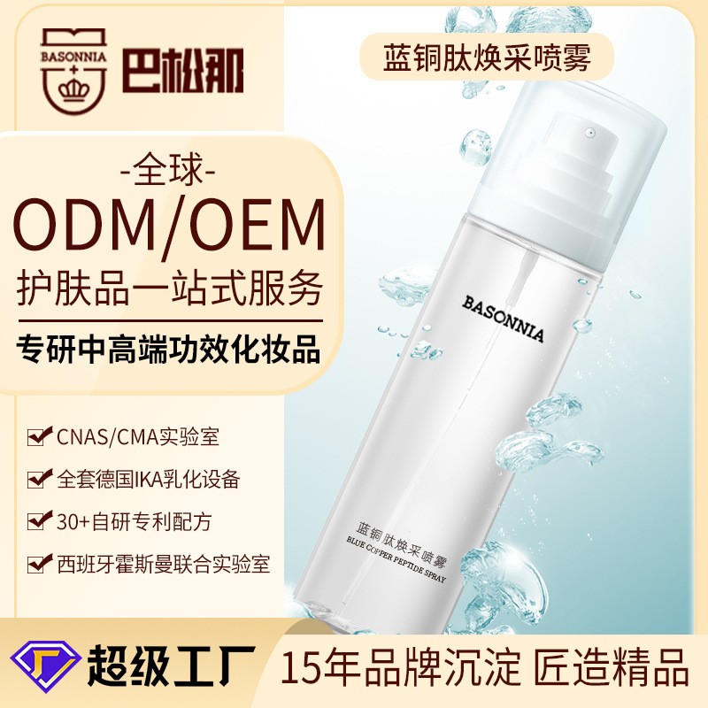 广东巴松那生物科技有限公司发布的oem定制蓝铜肽胜爽肤水 喷雾收缩毛孔面部抗皱紧致补水保湿精华水图集库