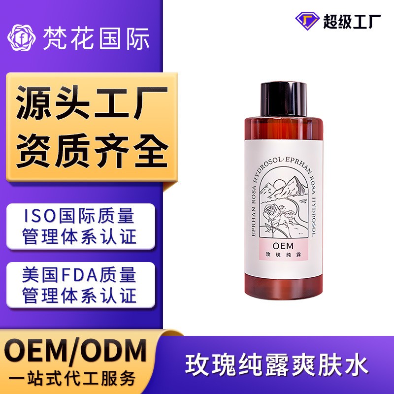 广州梵花化妆品有限公司发布的定制贴牌大马士革玫瑰纯露保湿补水植物蒸馏温和湿敷爽肤水化妆水图集库