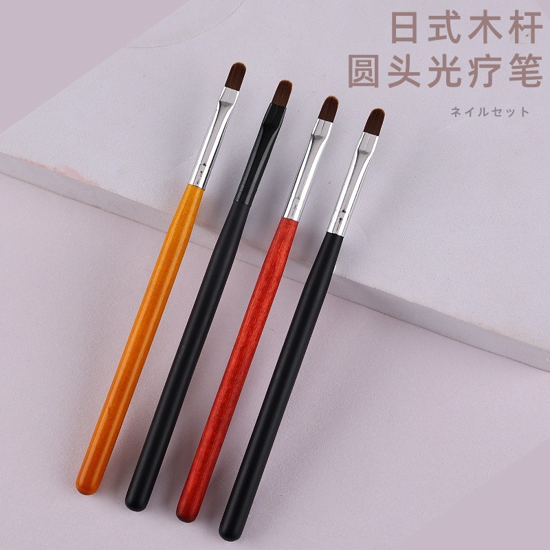 进贤县豆蔻美妆美甲笔刷厂发布的工厂定制日式圆头光疗笔木杆单支彩绘画花笔圆头雕花晕染笔蕾丝笔图集库