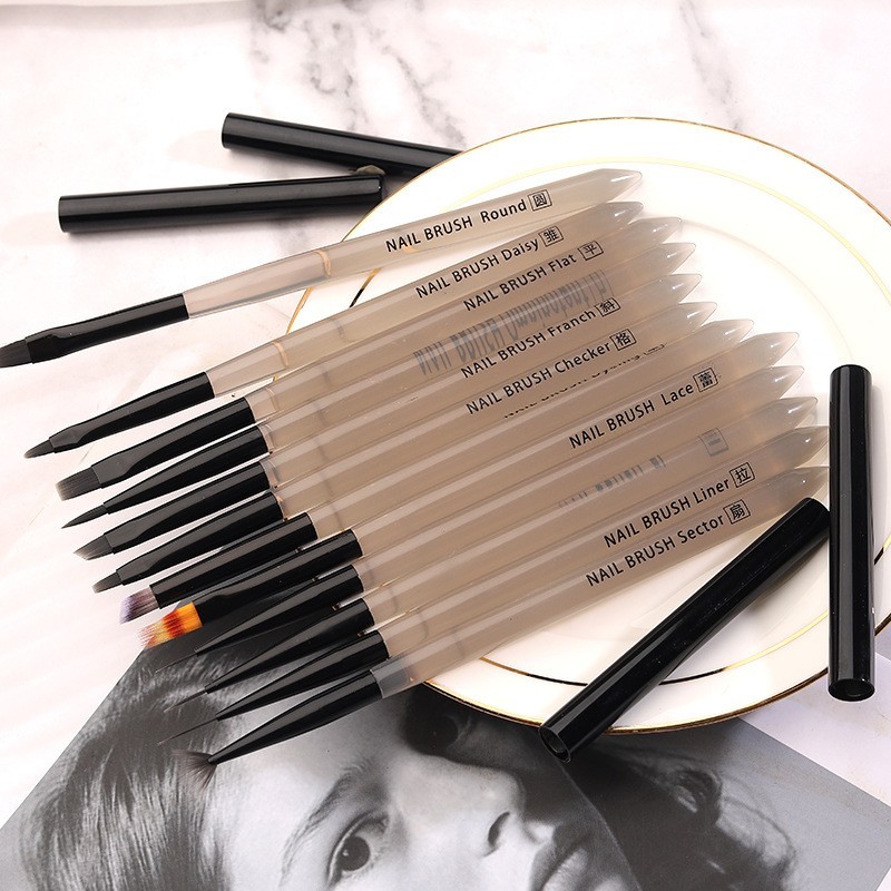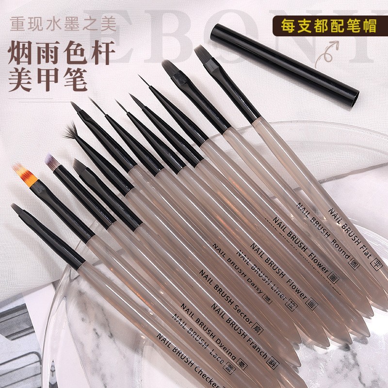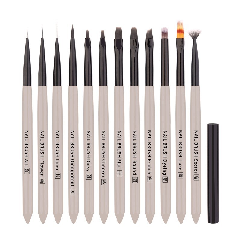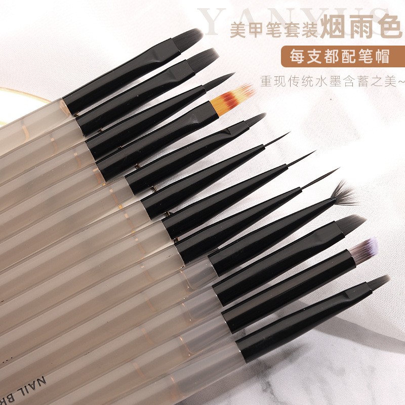 进贤县豆蔻美妆美甲笔刷厂发布的工厂定制美甲彩绘笔全套12支 烟雨色画花拉线笔光疗笔美甲笔刷图集库