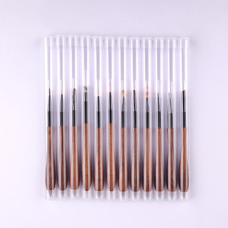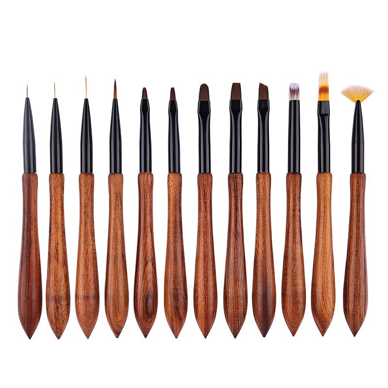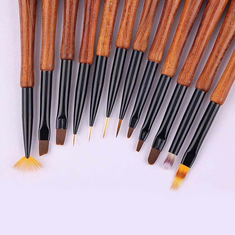进贤县豆蔻美妆美甲笔刷厂发布的工厂定制日式檀木杆美甲彩绘笔画花笔套装12支 初学者斜头光疗笔图集库