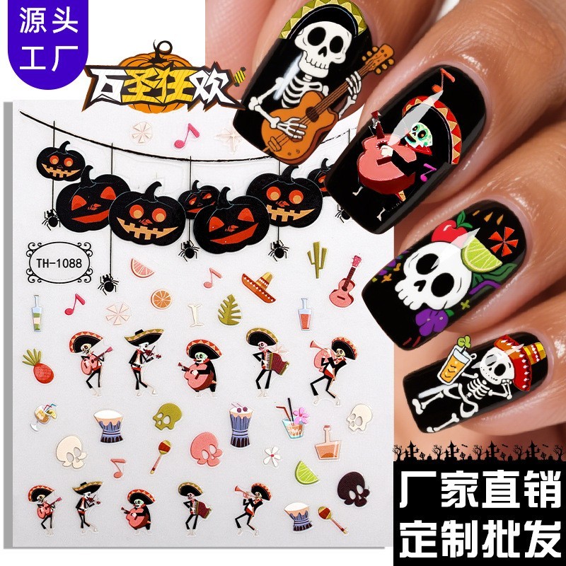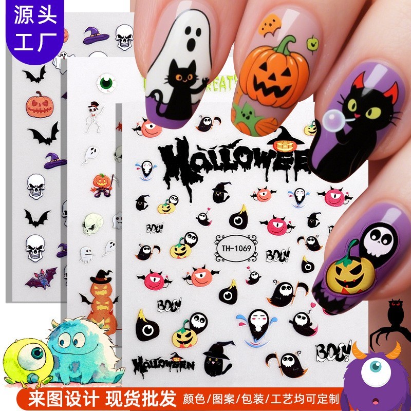 广州市正祥印刷有限公司发布的正祥工厂定制万圣节美甲贴纸OEM幽灵骷髅夜光指甲贴ODM万圣伤疤贴图集库