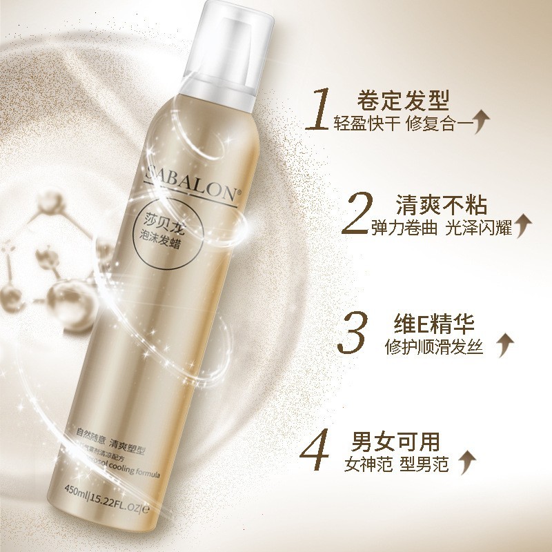 广州原理化妆品有限公司发布的莎贝龙泡沫发蜡定型喷雾持久定型专业护卷头发清香摩丝理发店图集库