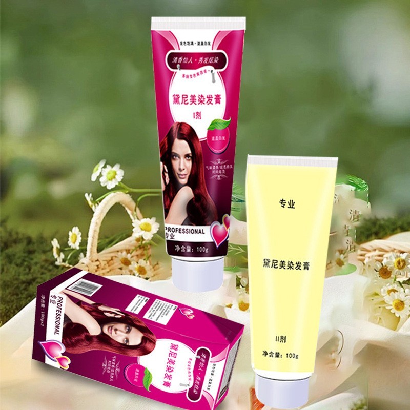 广东顺德黛尼美日用化妆品科技有限公司发布的黛尼美不伤发植物染发膏男女可用潮流色染发剂居家遮盖白发染膏图集库