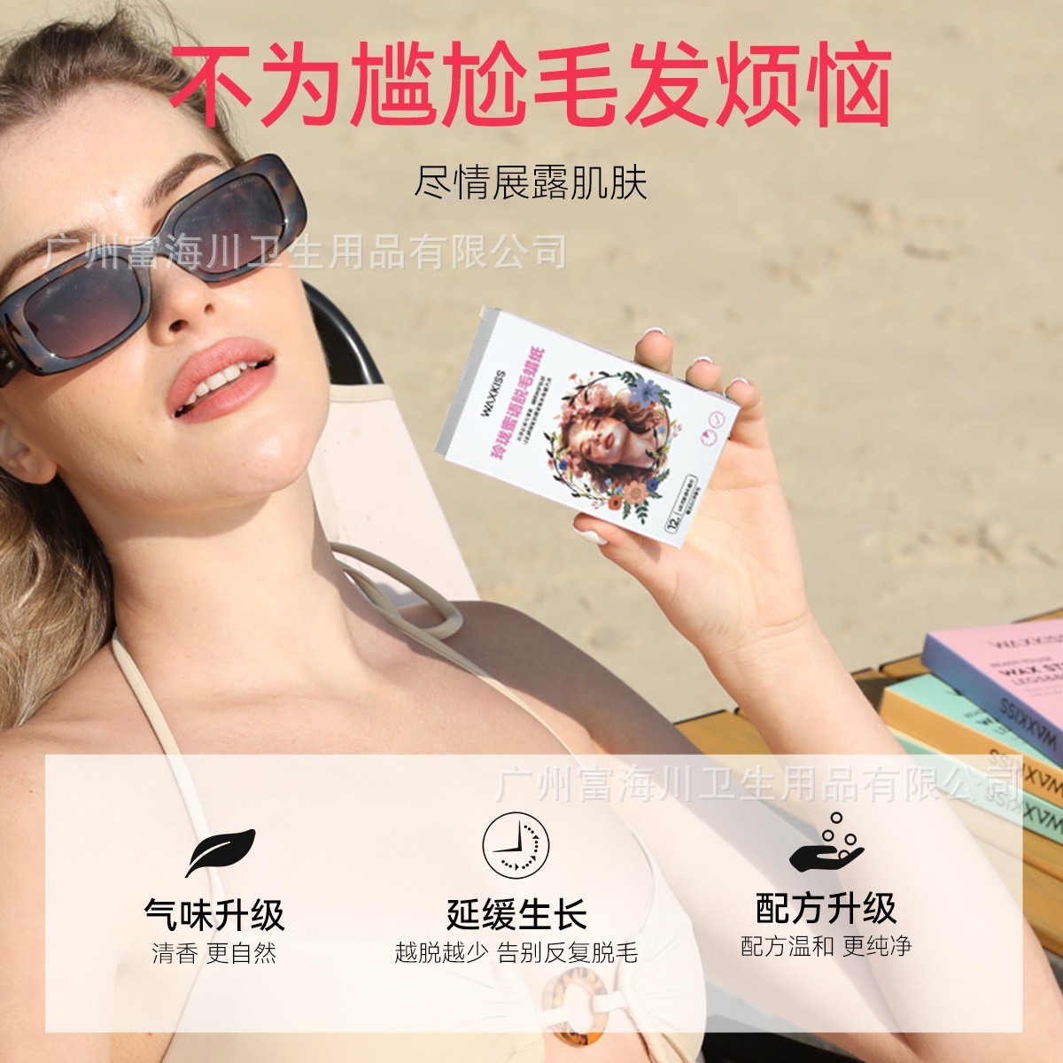 广州富海川卫生用品有限公司发布的waxkiss脱毛蜡纸专为脸部定制可裁剪脱毛眉部唇部脱毛纸低敏蜡条图集库