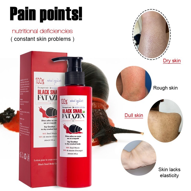 广州国粹生物科技有限公司发布的跨境FATAZEN黑蜗牛原液身体乳补水保湿滋润嫩肤防干裂全英文外贸图集库