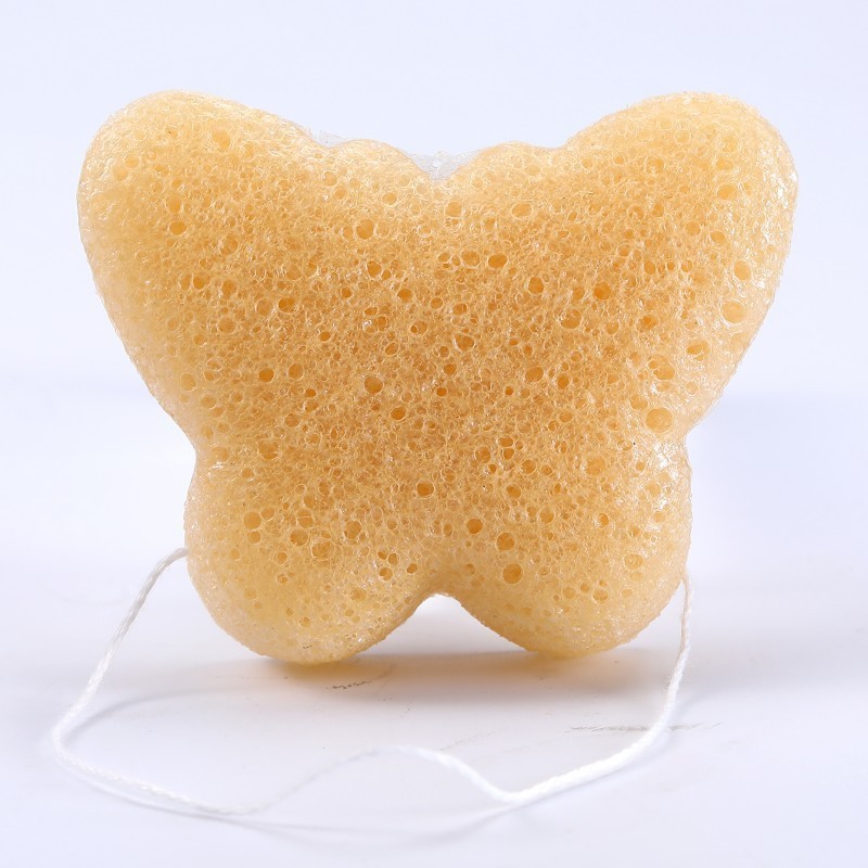 青岛馥佳乐化妆用品有限公司发布的蝴蝶形状魔芋洁肤棉支持开模定做多种规格形状脸部洁肤洗颜棉图集库