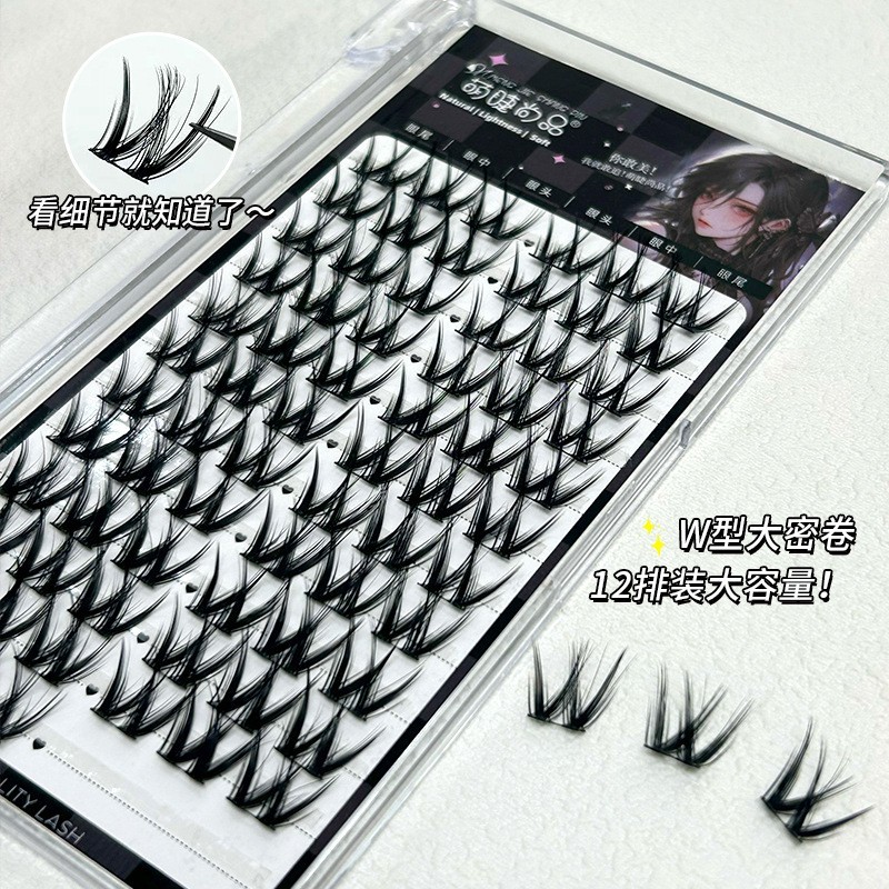 平度市蒂睫眼睫毛厂发布的萌睫尚品懒人W型大密卷浓密款假睫毛单簇欧美毛流感分段式眼睫毛图集库