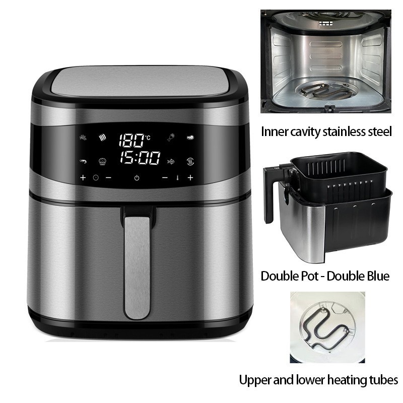 宁波市月诚电器有限公司发布的8L新款大容量家用空气炸锅不锈钢多功能智能全自动上下加热电炸锅图集库
