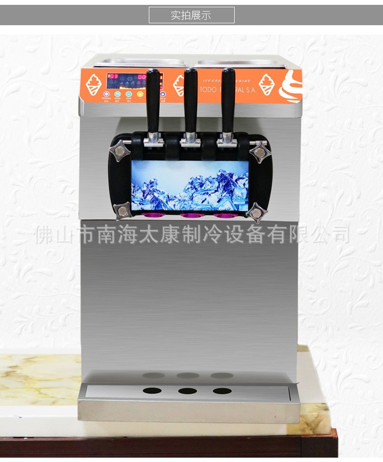 佛山市南海太康制冷设备有限公司发布的台式三头冰淇淋机商用冰激凌机三色冰淇淋机全自动雪糕机软甜筒机图集库