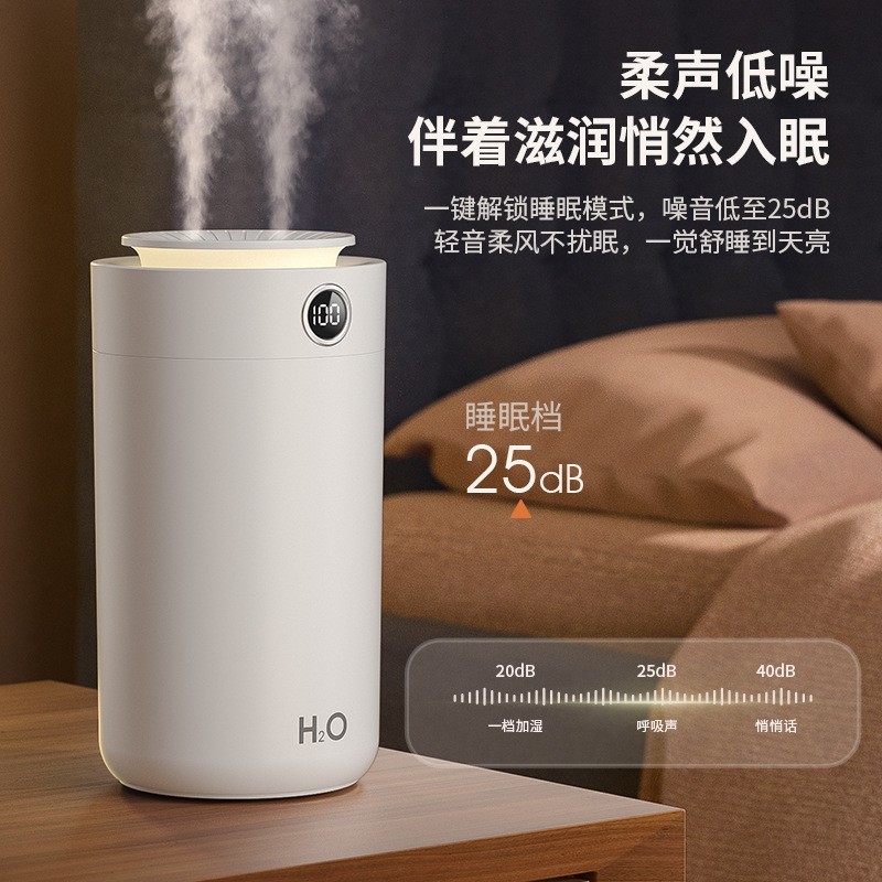 东莞市尚潮坊电子科技有限公司发布的定制新款智能双喷雾数显加湿器夜灯充电款大容量加湿器图集库