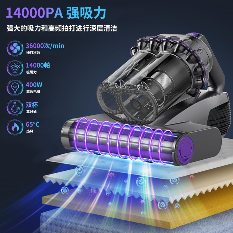苏州普尔克斯智能科技有限公司发布的跨境新品除螨仪双尘杯双屏数显紫外线杀菌去螨虫家用床上吸尘器图集库