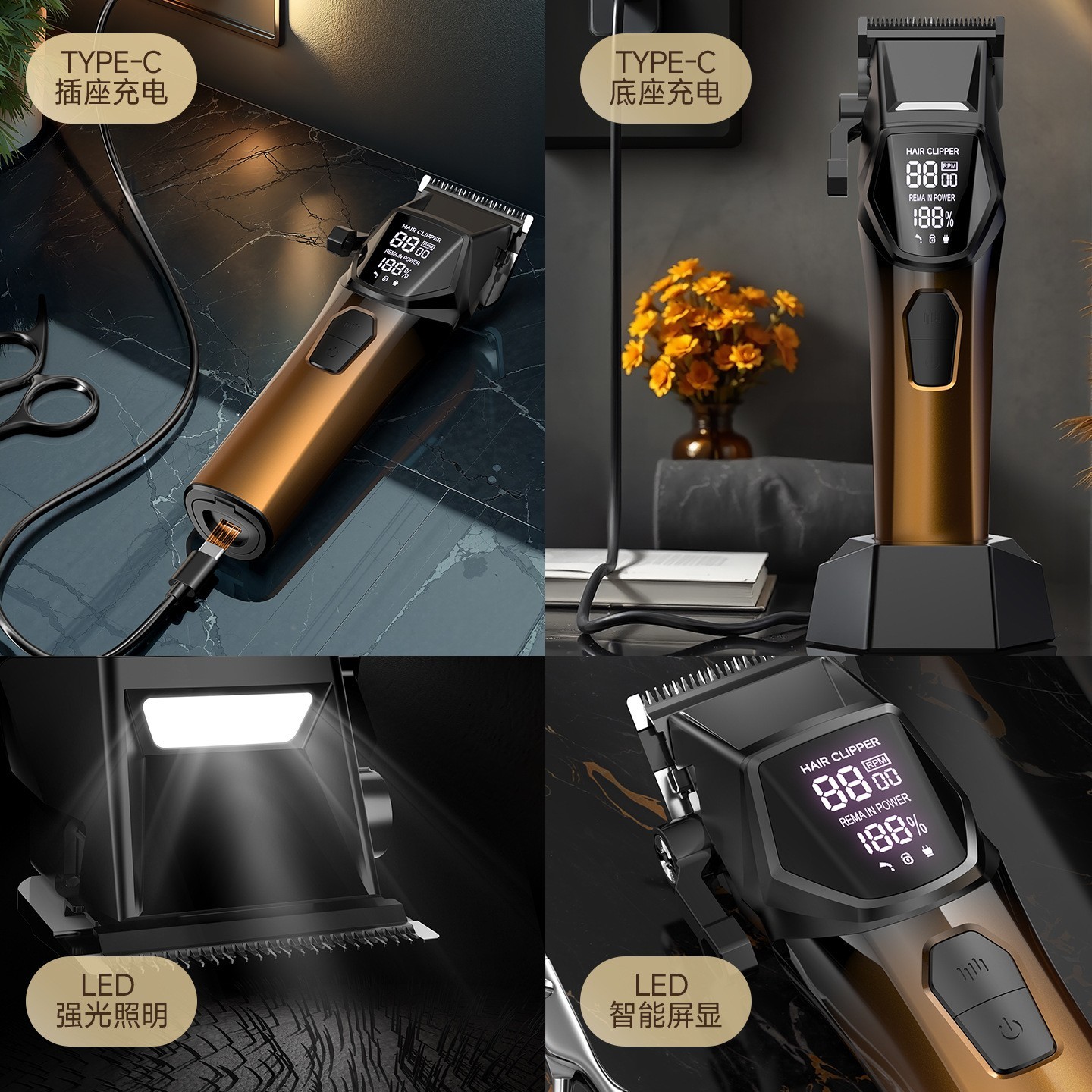 温州凡科电器有限公司发布的定制跨境多合一电动理发器套装数显多功能家用理发USB快充电推剪图集库