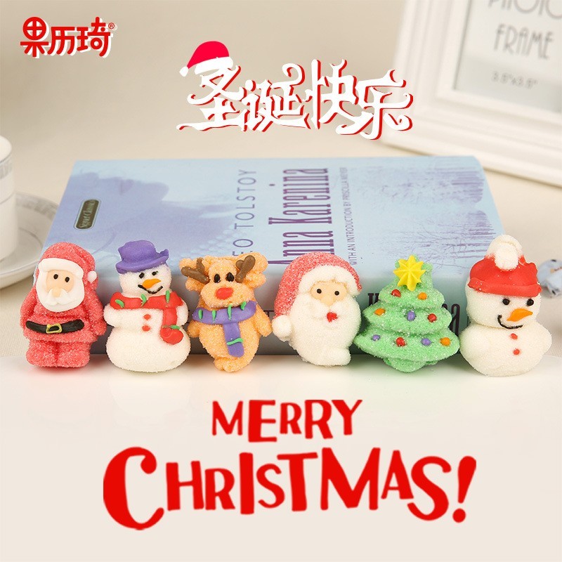湖南双娇食品有限公司发布的果历琦棉花糖圣诞节糖果礼品定制 礼盒装儿童水果味新式软糖OEM图集库