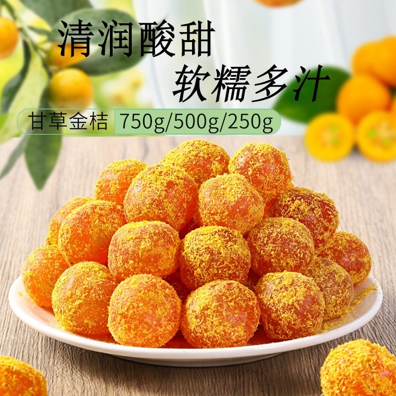 蛮大仁食品(临沂市)有限公司发布的甘草金桔干500g正宗冰糖金桔干清凉舒喉金橘蜜饯果脯250g图集库