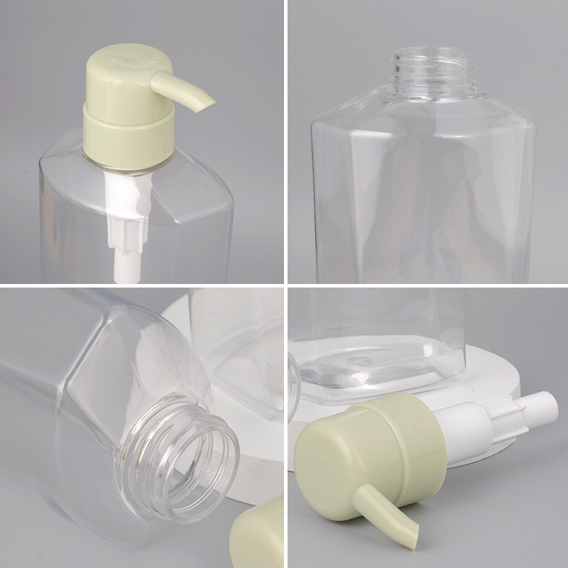 广州市隆发塑胶包装有限公司发布的新款500ml六边形发水瓶透明pet按压分装瓶家庭装沐浴露护发素空瓶图集库