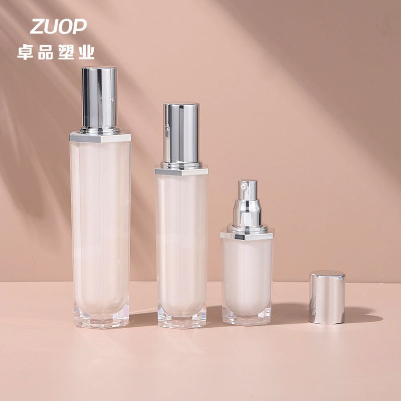 宁波卓品塑业有限公司发布的定制亚克力六角贴片瓶珠光白化妆品瓶水乳膏霜喷雾分装瓶图集库