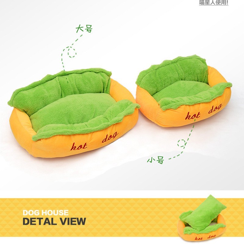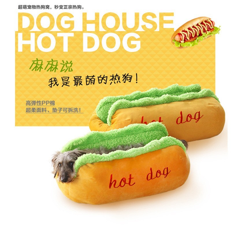 义乌市蕾拉宠物用品厂发布的定制新款大号小号保暖香肠宠物狗窝 热狗造型可拆洗宠物用品床垫图集库