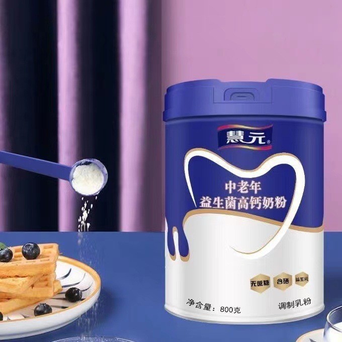 洛阳慧元乳业有限公司发布的中老年益生菌多维高钙牛奶粉800g成人补钙富硒营养早餐代餐粉图集库