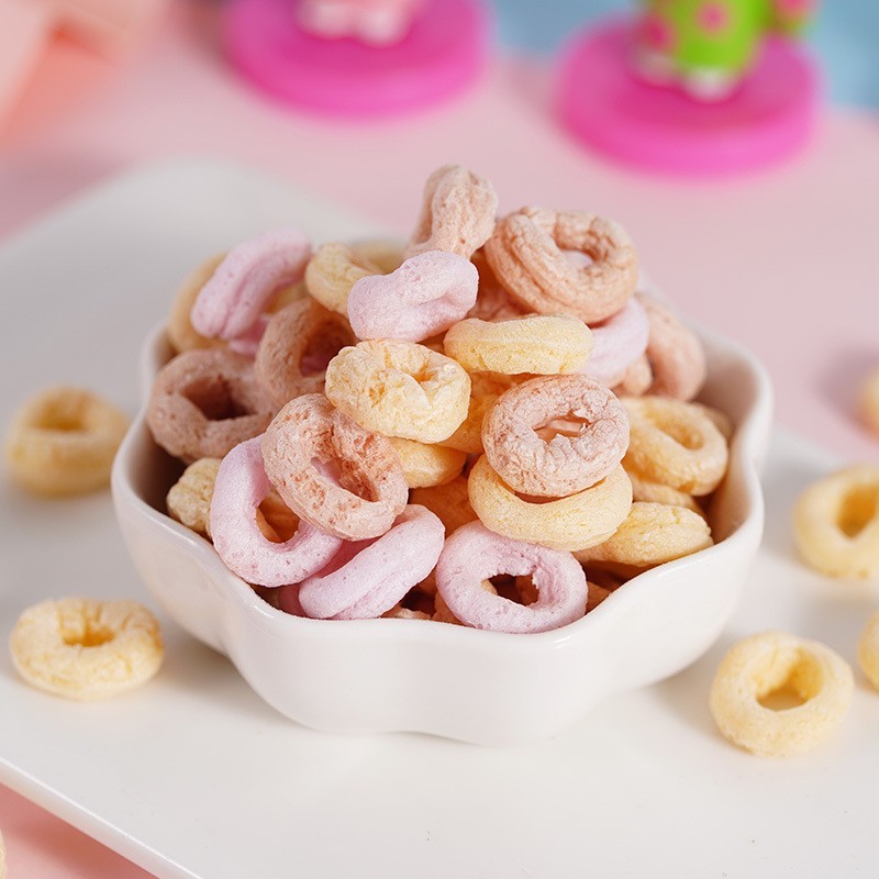 淮北市欣然食品有限责任公司发布的厂家OEM定制儿童多彩谷物圈多种营养谷蔬泡芙圈零食易抓握图集库
