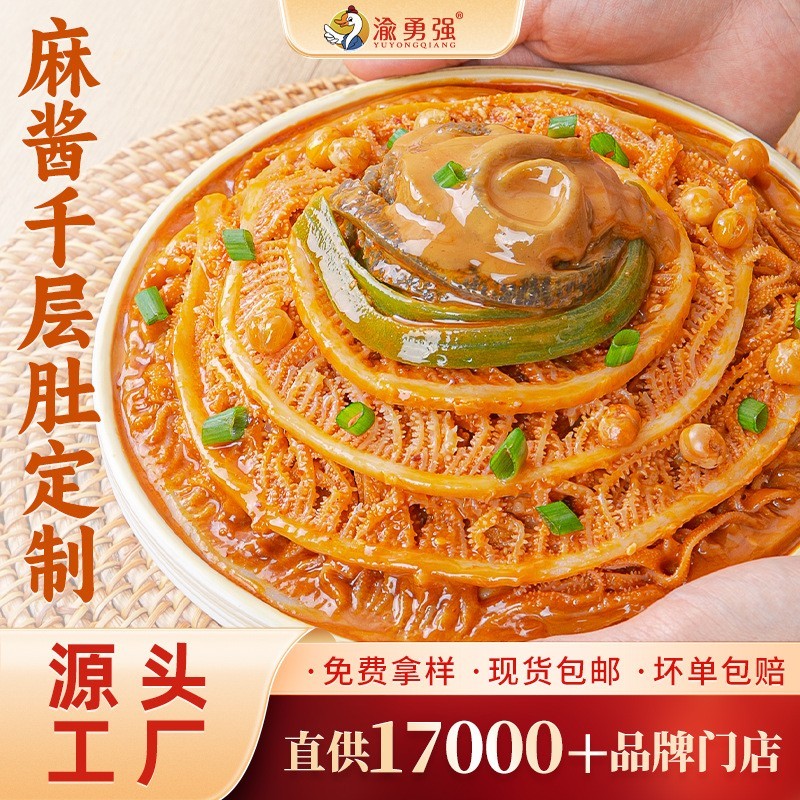 成都渝勇强食品有限公司发布的冷吃千层肚定制即食麻酱大杂烩三拼毛肚贡菜香辣红油爆款盒装凉拌图集库