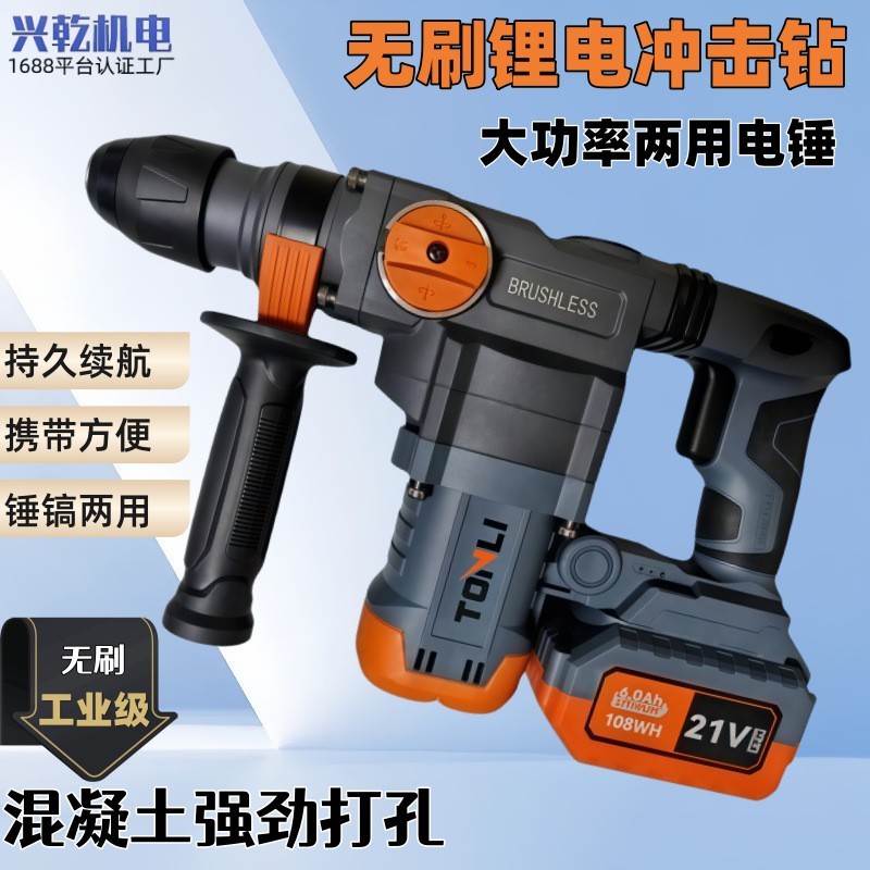 宁波兴乾机电科技有限公司发布的充电电锤无刷大功率锂电冲击钻工业混凝土大艺电池通用冲击电锤图集库