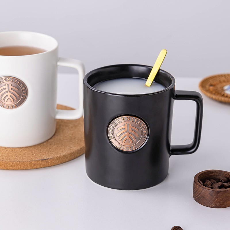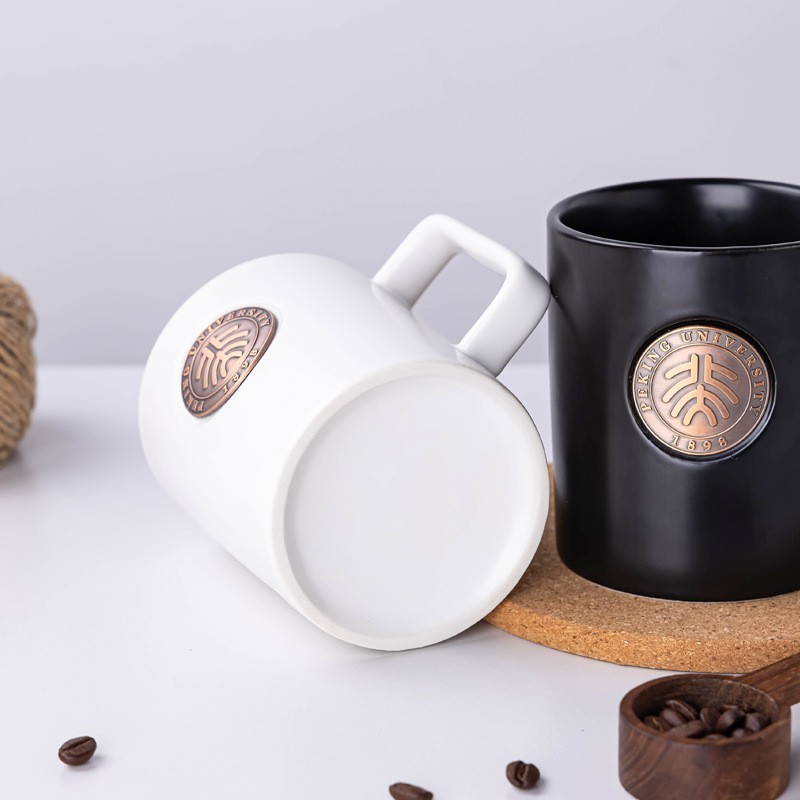 醴陵市美华瓷业有限公司发布的【定制】LOGO星巴风直筒铜牌咖啡陶瓷文创商务马克杯礼品广告杯子图集库