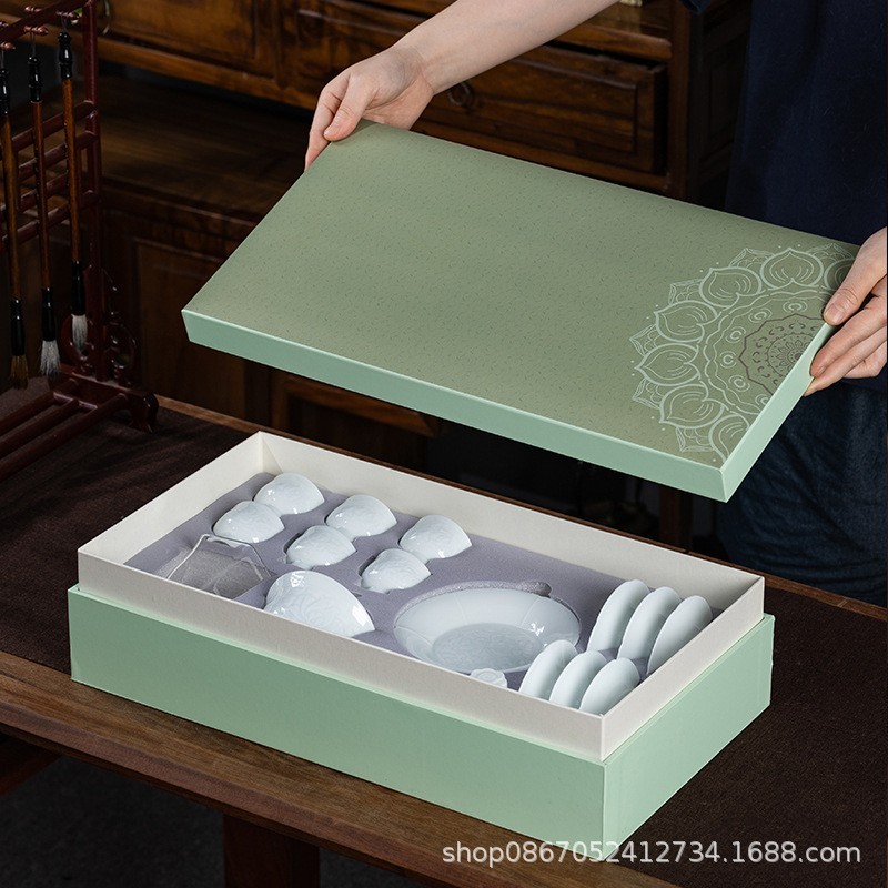 景德镇瓷美堂陶瓷有限公司发布的景德镇茶具套装礼盒影青瓷浮雕功夫茶具套装盖碗茶杯礼品定制logo图集库