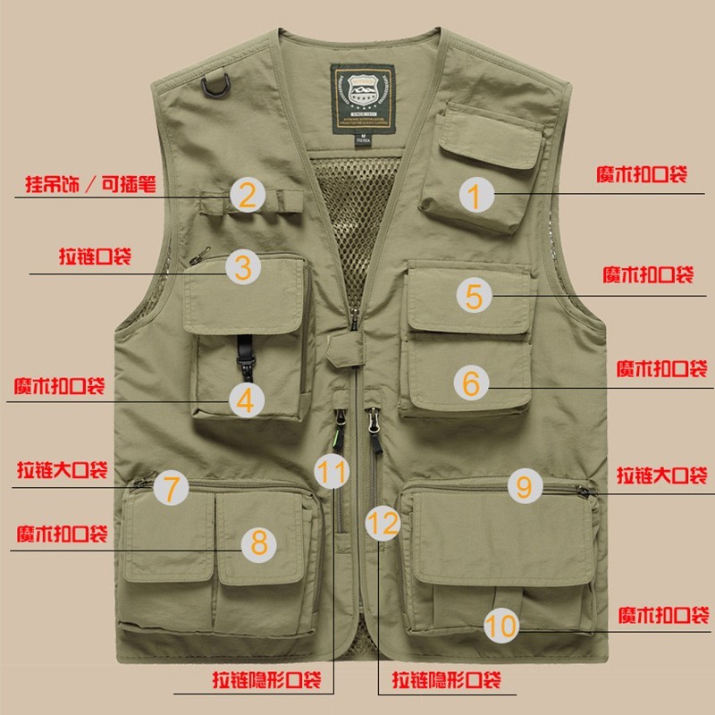 深圳市飞亿达服装有限公司发布的户外运动摄影工装拉链多口袋可拆卸马甲钓鱼背心坎肩马夹外套定制图集库