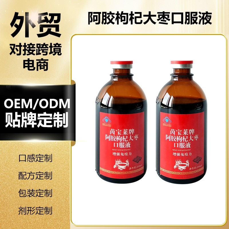 江西三诚实业有限公司发布的源头工厂跨境内贸OEM蓝帽保健女性滋补阿胶枸杞大枣口服液250ML瓶图集库