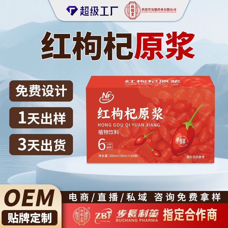 玖铭堂(安徽)药业有限公司发布的红枸杞原浆定制贴牌代加工源头工厂鲜榨枸杞原浆植物饮料图集库