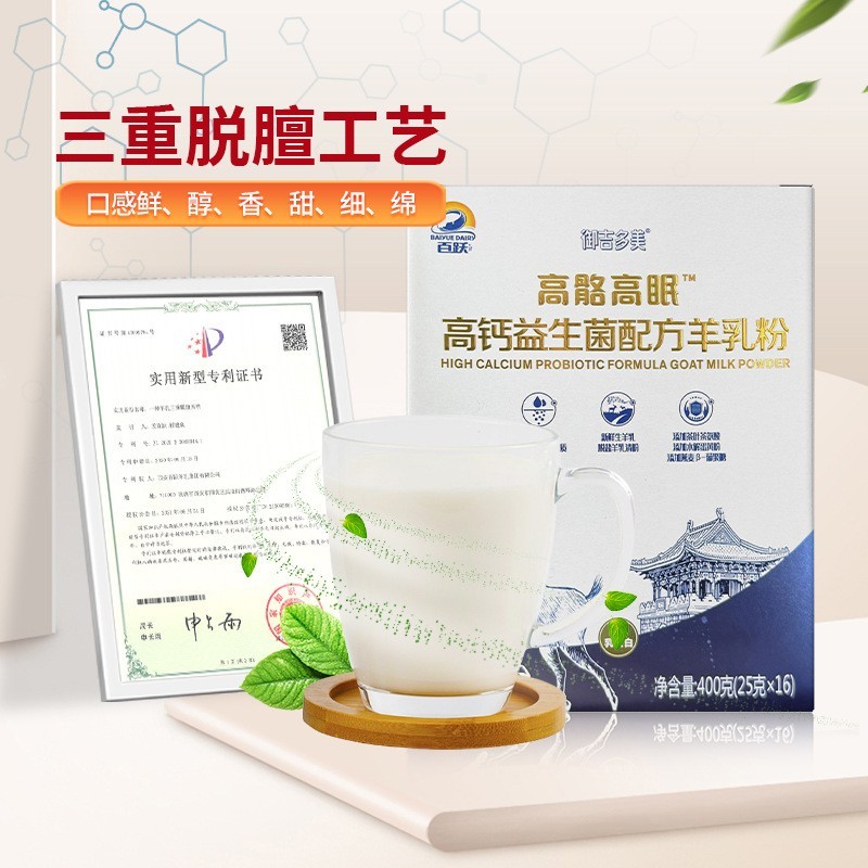 西安百跃羊乳集团有限公司发布的成人高钙羊奶粉代加工有机奶源ODM定制工厂益生菌纯中老年补钙奶图集库