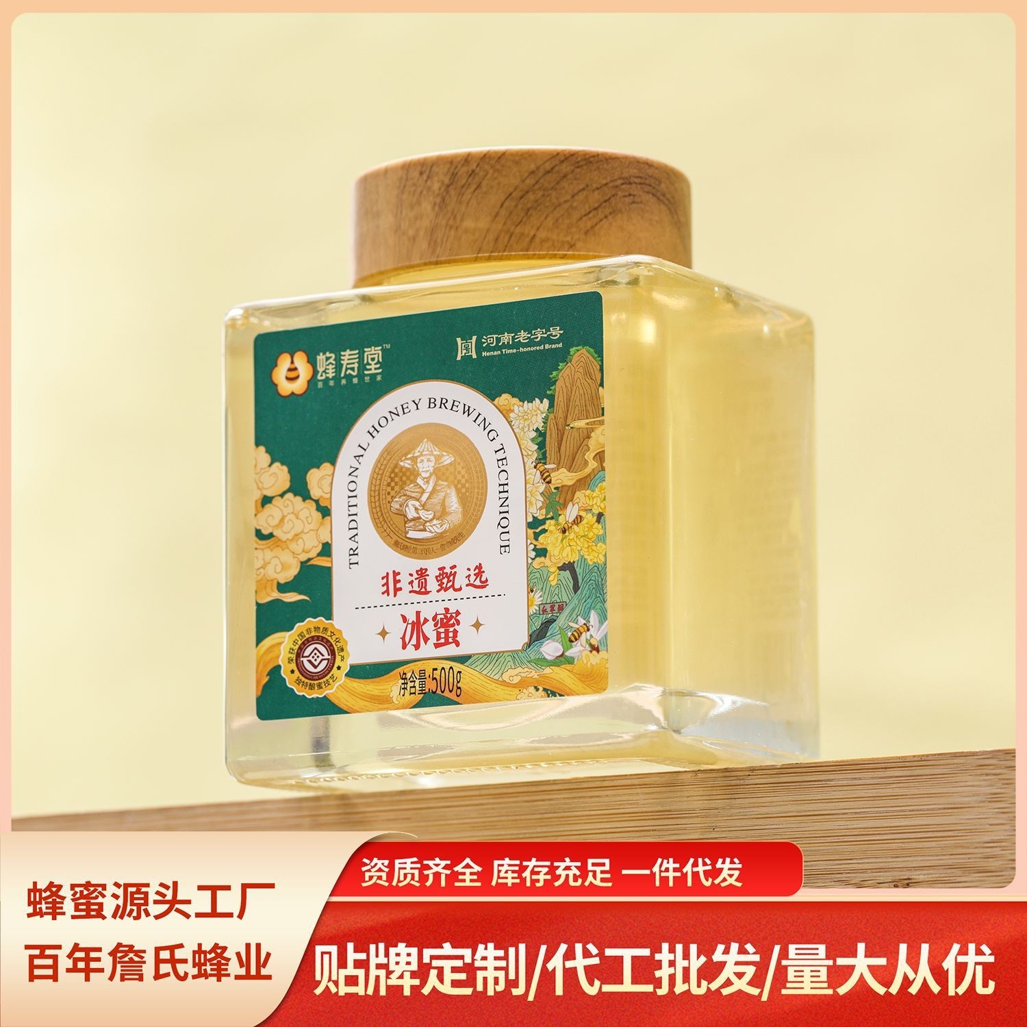 河南大别山詹氏蜜蜂园有限公司发布的冰蜜500g瓶装纯正蜂蜜源头工厂椴树蜂蜜洋槐蜜土蜂蜜图集库