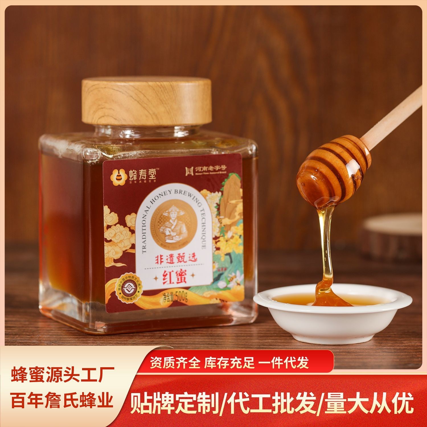 河南大别山詹氏蜜蜂园有限公司发布的红蜜500g瓶装纯正蜂蜜源头工厂椴树蜂蜜洋槐蜜土蜂蜜图集库