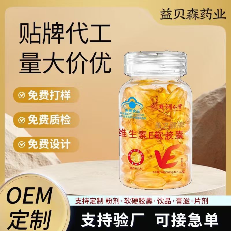 益贝森药业(山东)有限公司发布的维生素e软胶囊定制内服外涂擦脸用蓝帽天然维生素e胶囊100粒oem图集库