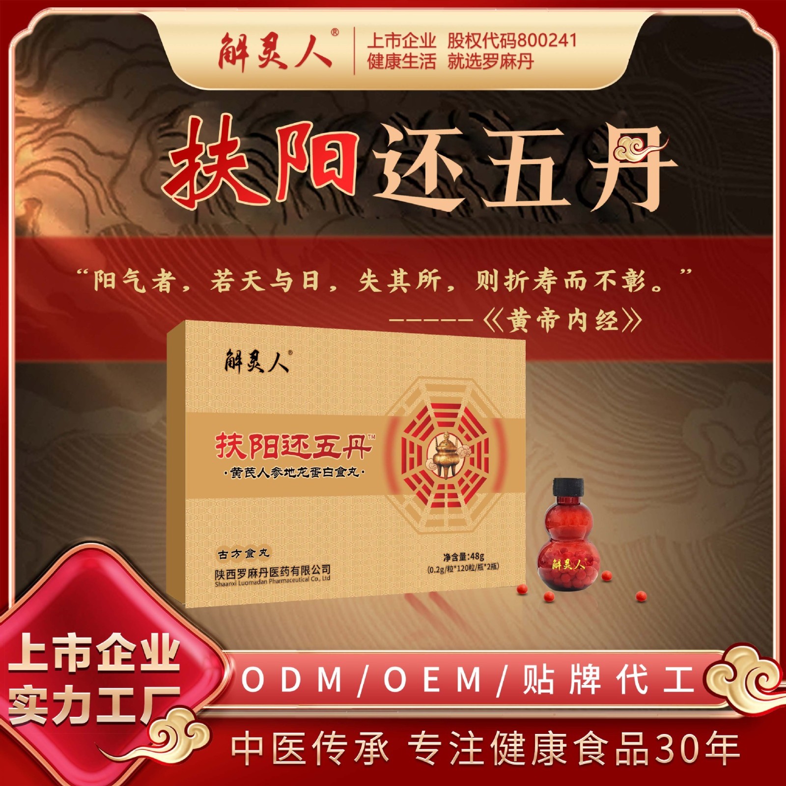 陕西罗麻丹医药有限公司发布的补元气黄芪人参地龙蛋白食丸元气四宝中老年调理养生健康八蒸八晒图集库