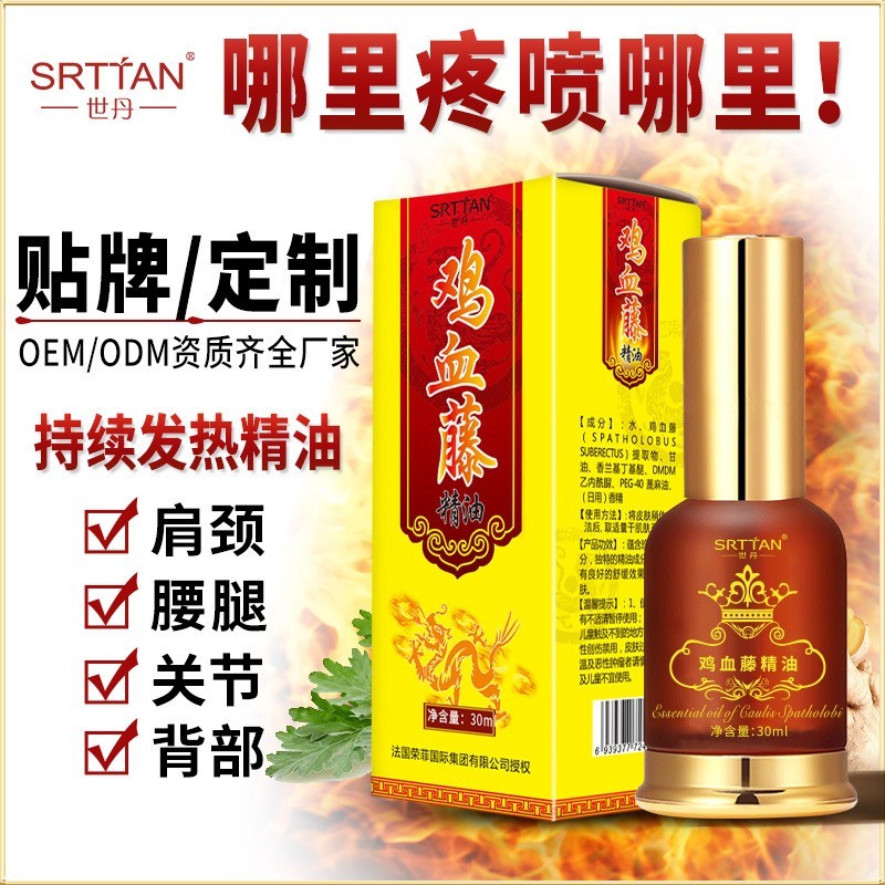 广东荣菲生物科技有限公司发布的世丹鸡血藤精油喷雾发热身体肩颈关节按摩厂家oem定制贴牌代加工图集库