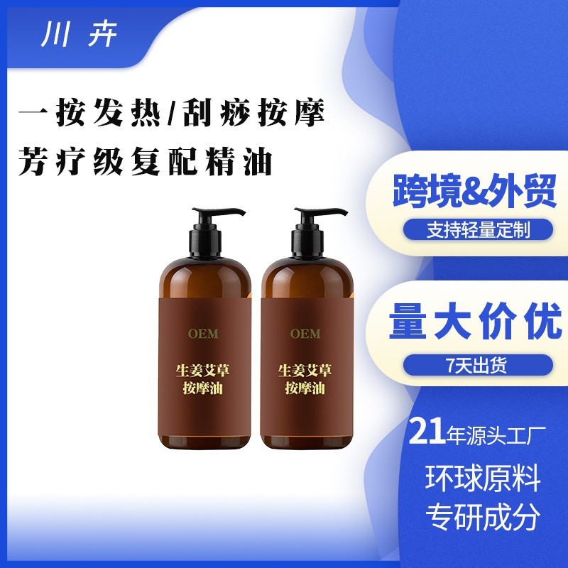 江西川卉草本生物科技有限公司发布的OEM生姜艾草按摩精油代加工精油贴牌发热刮痧按摩开背生姜艾草油图集库