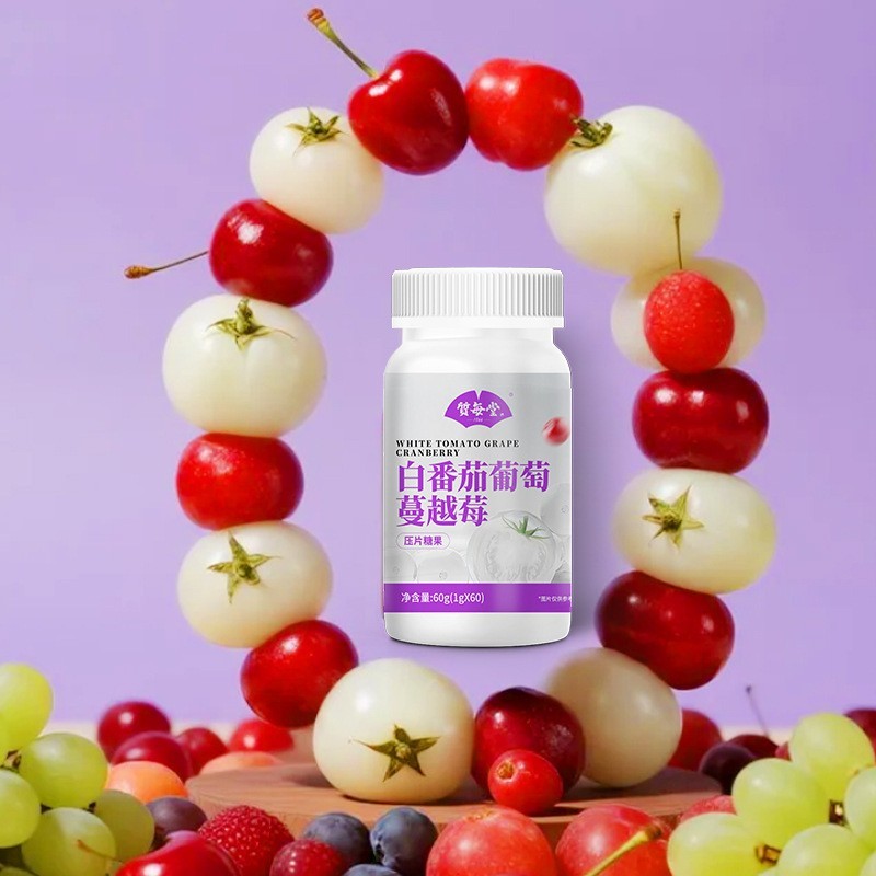 质每(湖北)健康科技有限公司发布的白番茄蔓越莓压片糖果代加工 片剂OEM贴牌 特殊膳食品定制咀嚼片图集库