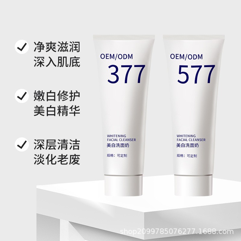 广州市金栢丽生物科技有限公司发布的OEM加工定制377美白祛斑洗面奶 提亮肤色改善暗沉淡化斑点洁面乳图集库