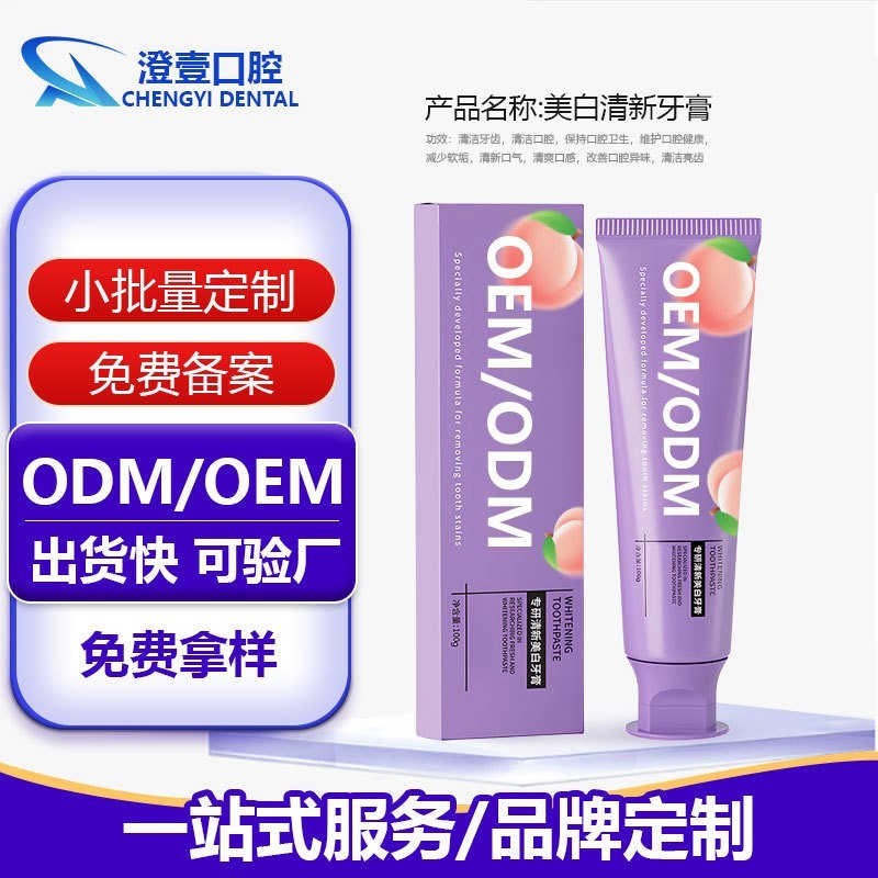 广州澄壹生物科技有限公司发布的定制樱花白桃清新炫白牙膏专攻牙渍去牙黄除口臭工厂贴牌牙膏图集库
