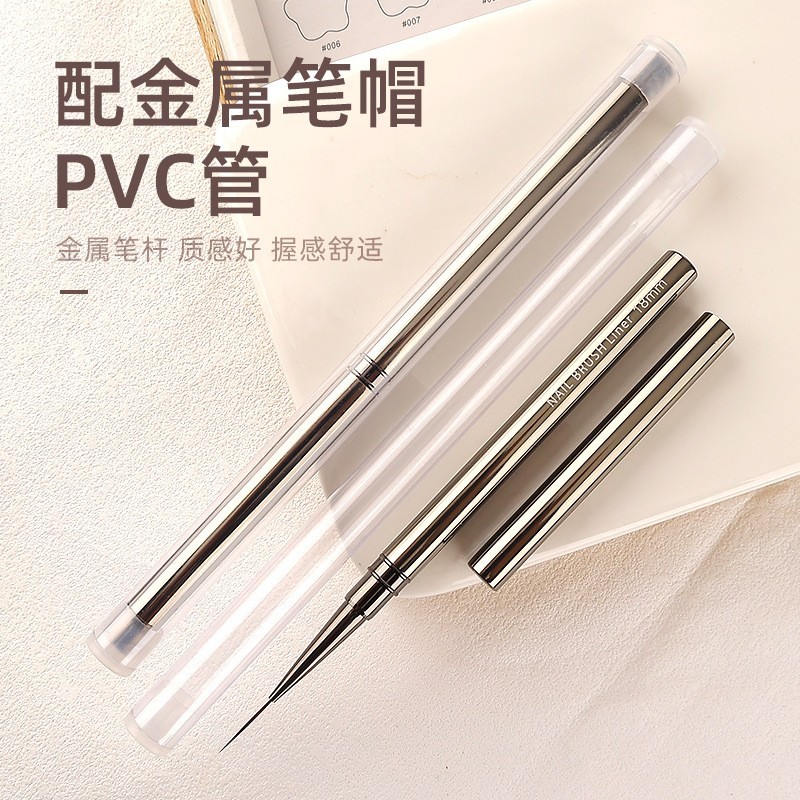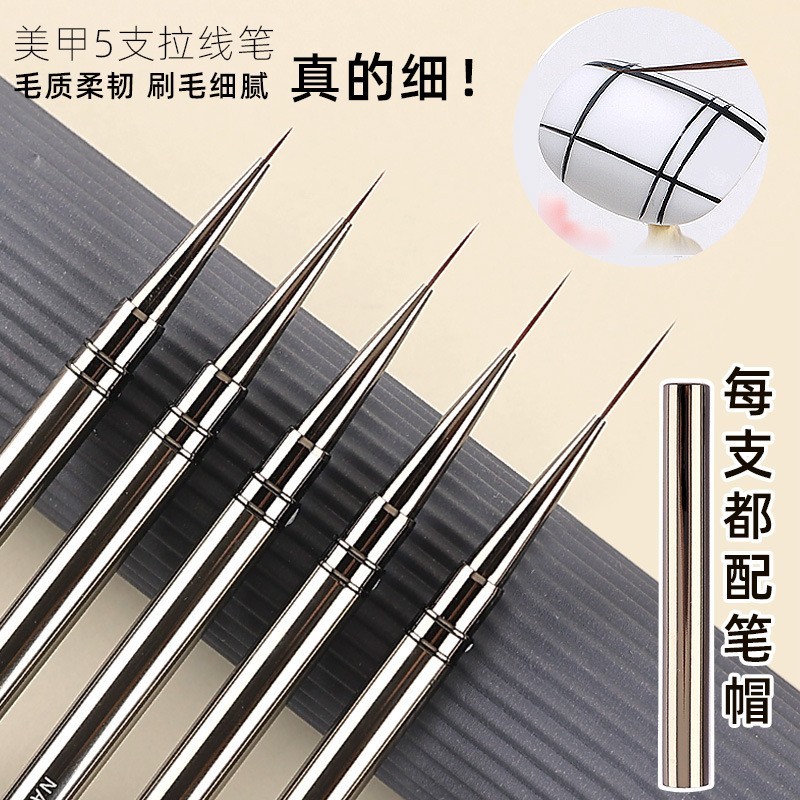 进贤县豆蔻美妆美甲笔刷厂发布的厂家定制极细美甲拉线笔套装金属杆勾边画花美甲勾线笔bjd面相笔图集库