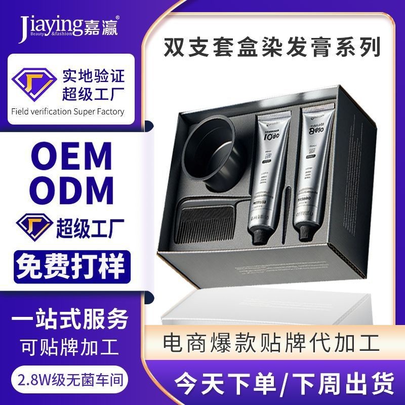 广东嘉瀛生物科技有限公司发布的OEM/ODM理发店染发膏双氧奶套盒定制双支植物无氨染发剂工厂护发图集库