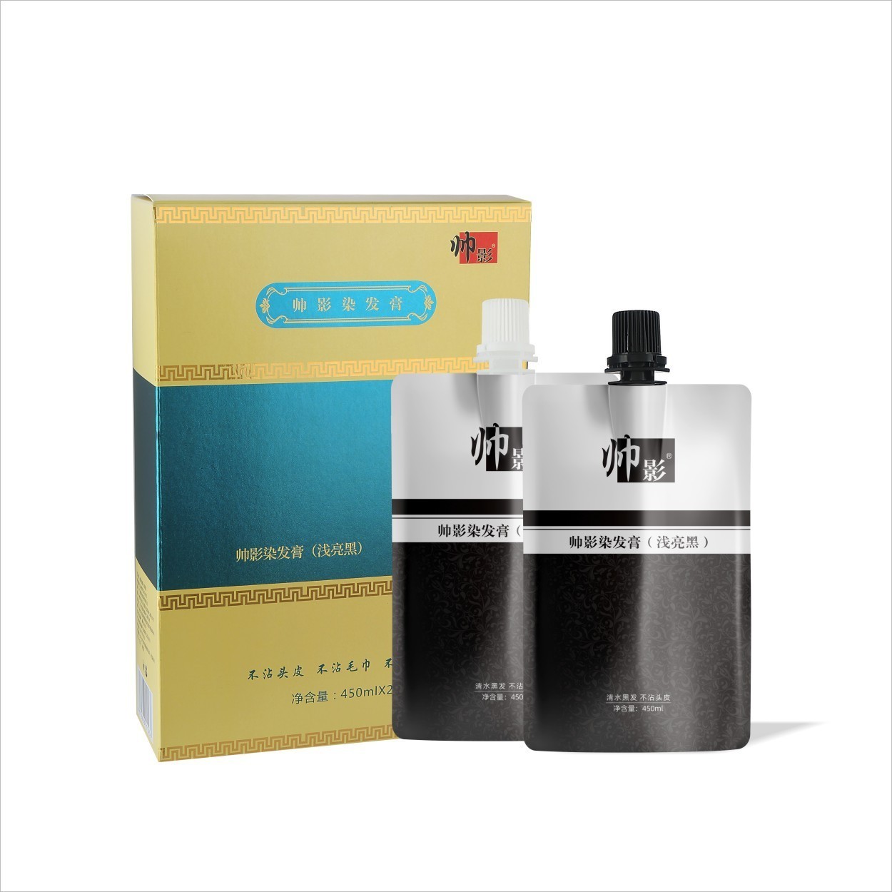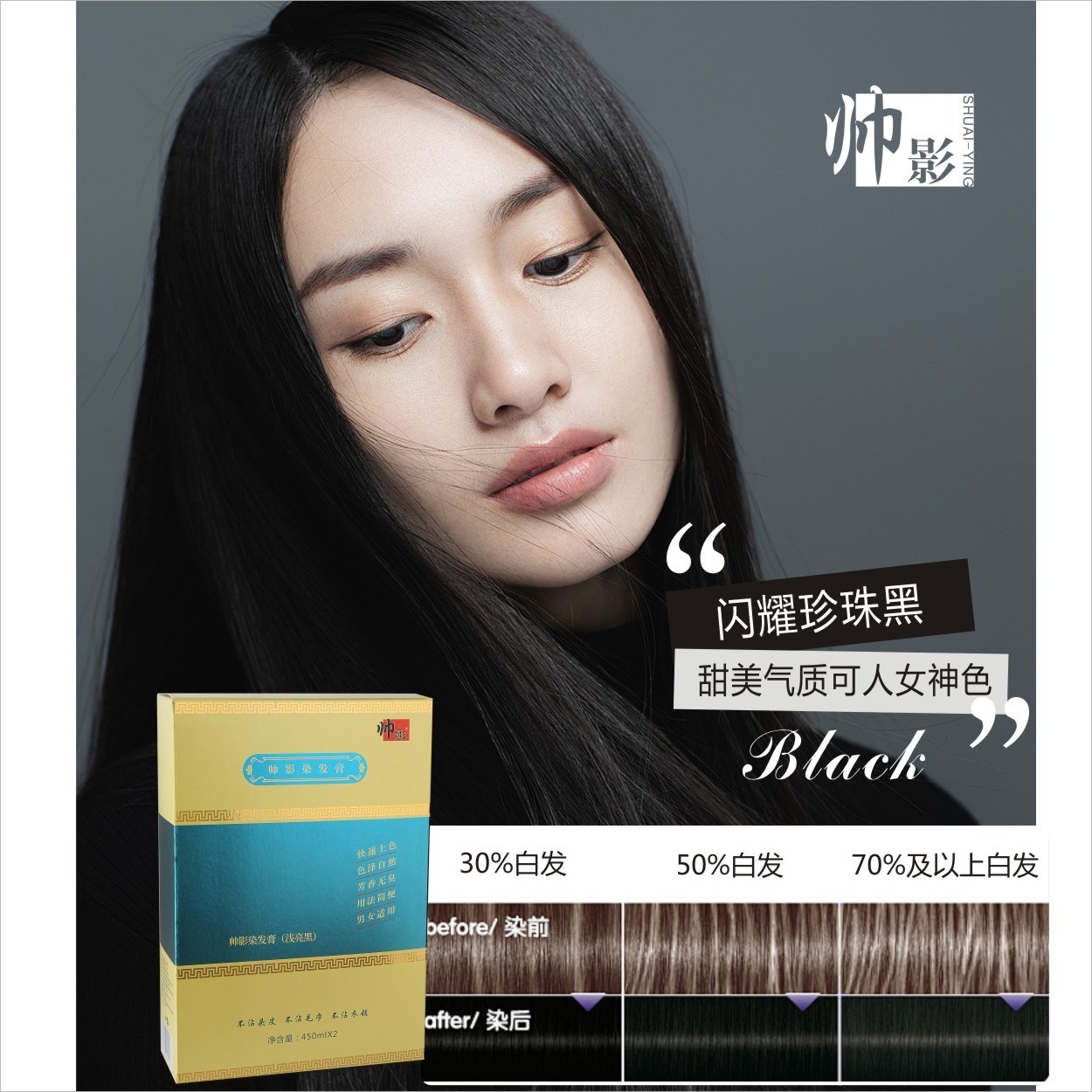 广东帅影医药生物科技有限公司发布的加工定制植萃遮白持久自然不掉色黑油染发剂 氨基黑染发膏450ml图集库