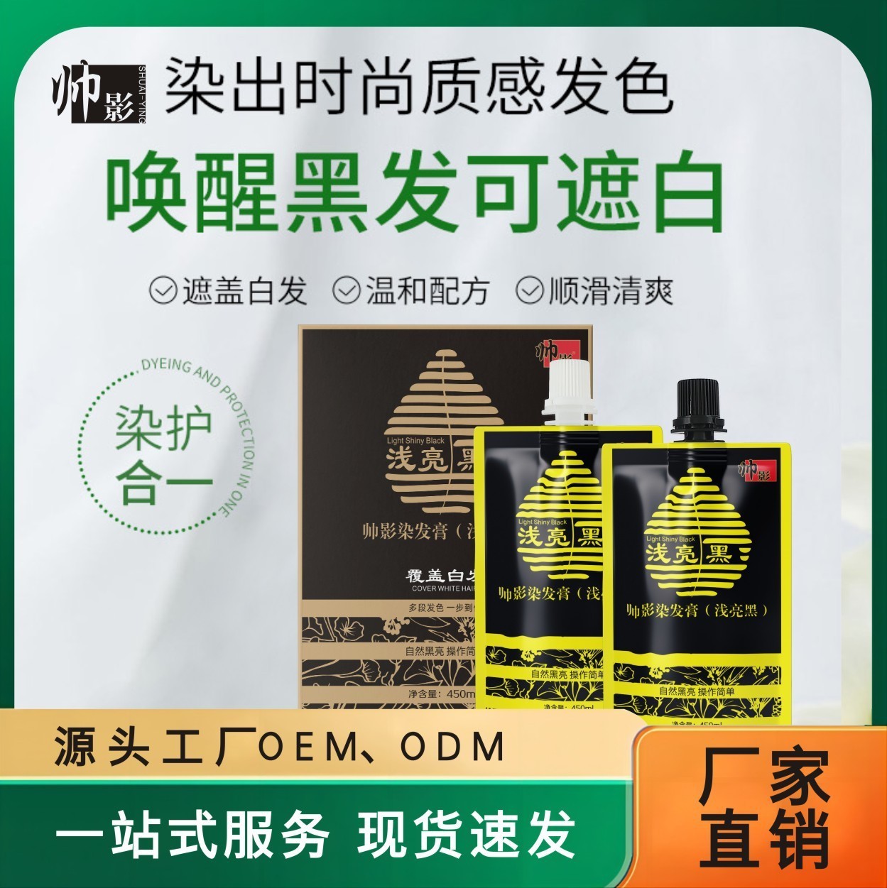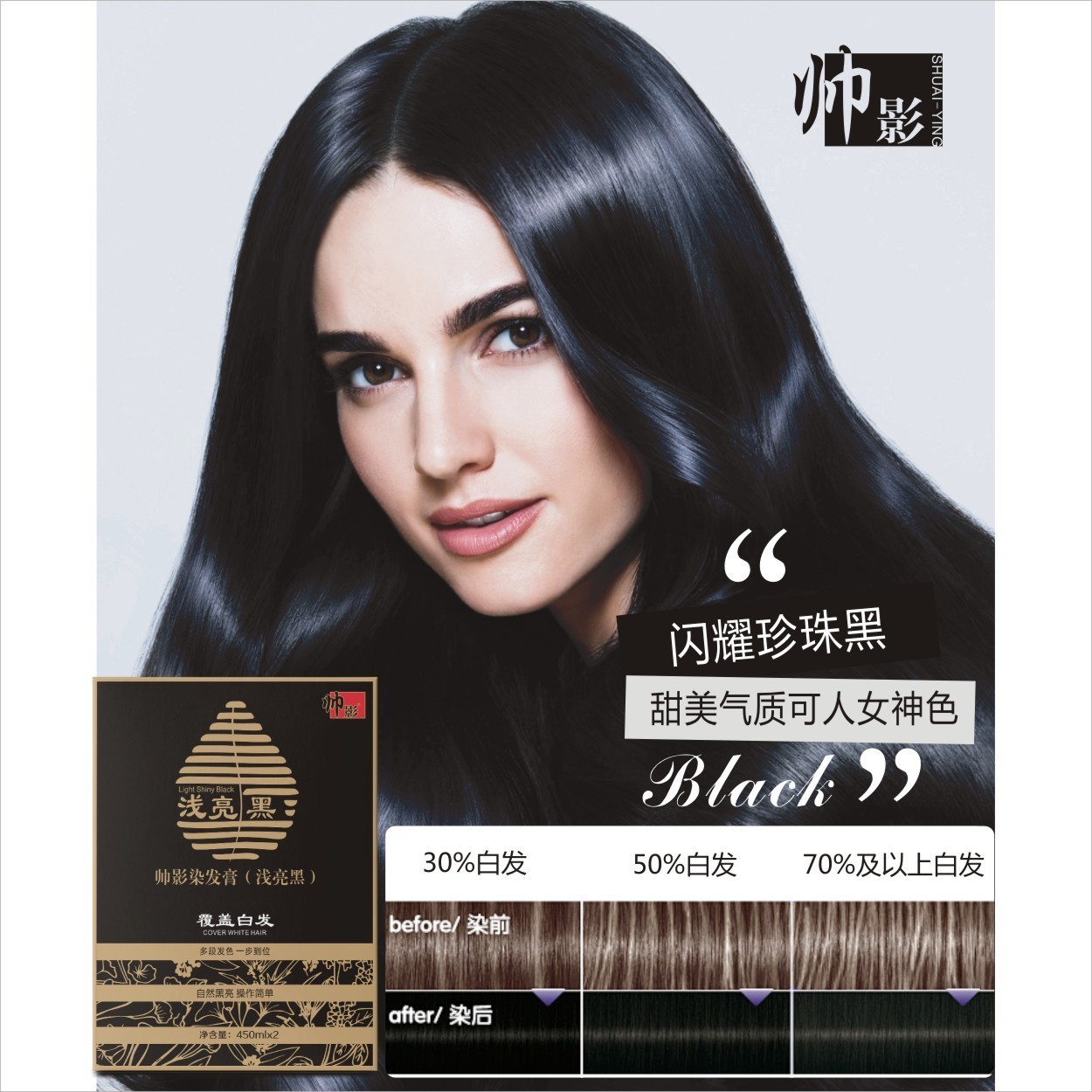 广东帅影医药生物科技有限公司发布的加工植萃遮白持久自然不掉色黑油染发剂植物蜡染不刺激黑色染发膏图集库