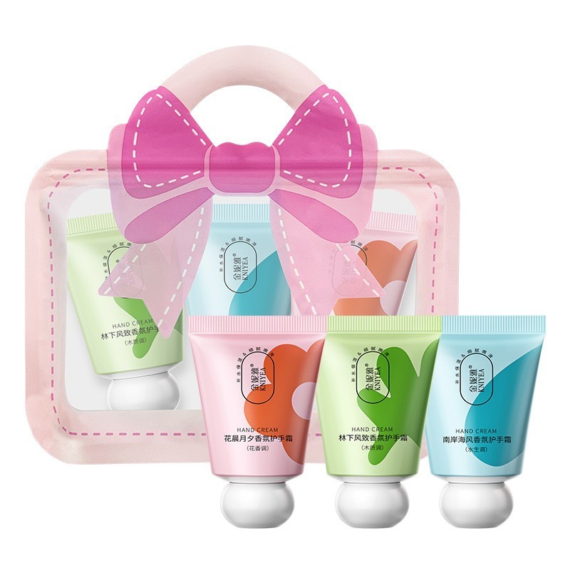 广州市微云化妆品有限公司发布的金妮雅小胖墩护手霜定制加工补水保湿香氛手霜礼袋装化妆品oem图集库