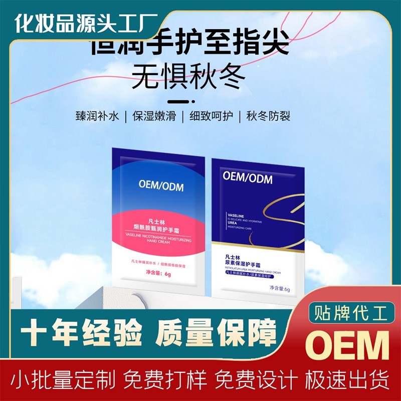 广州市传祺天然化妆品制造有限公司发布的OEM烟酰胺甄润护手霜滋润保湿防干裂独立袋装尿素保湿护手霜定制图集库