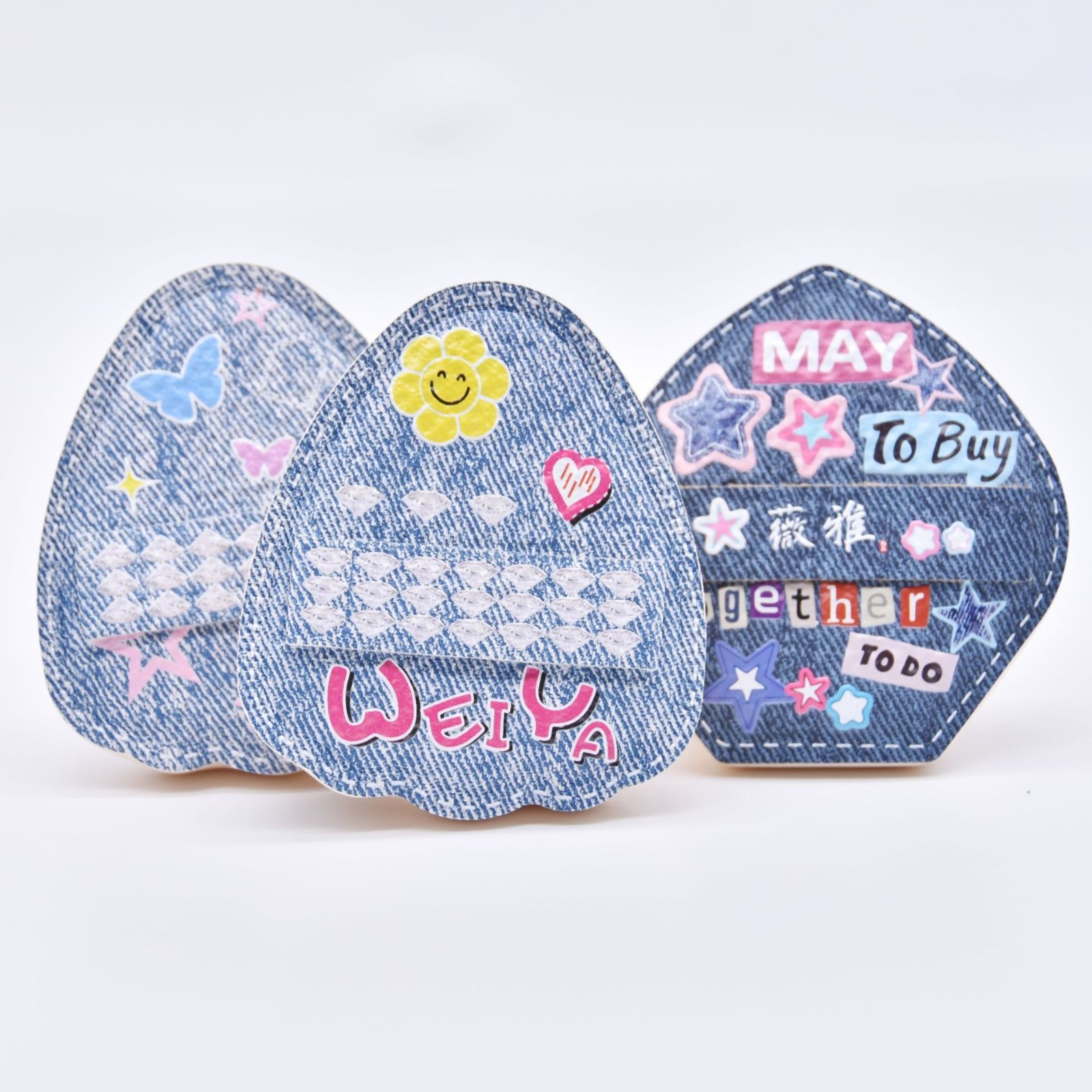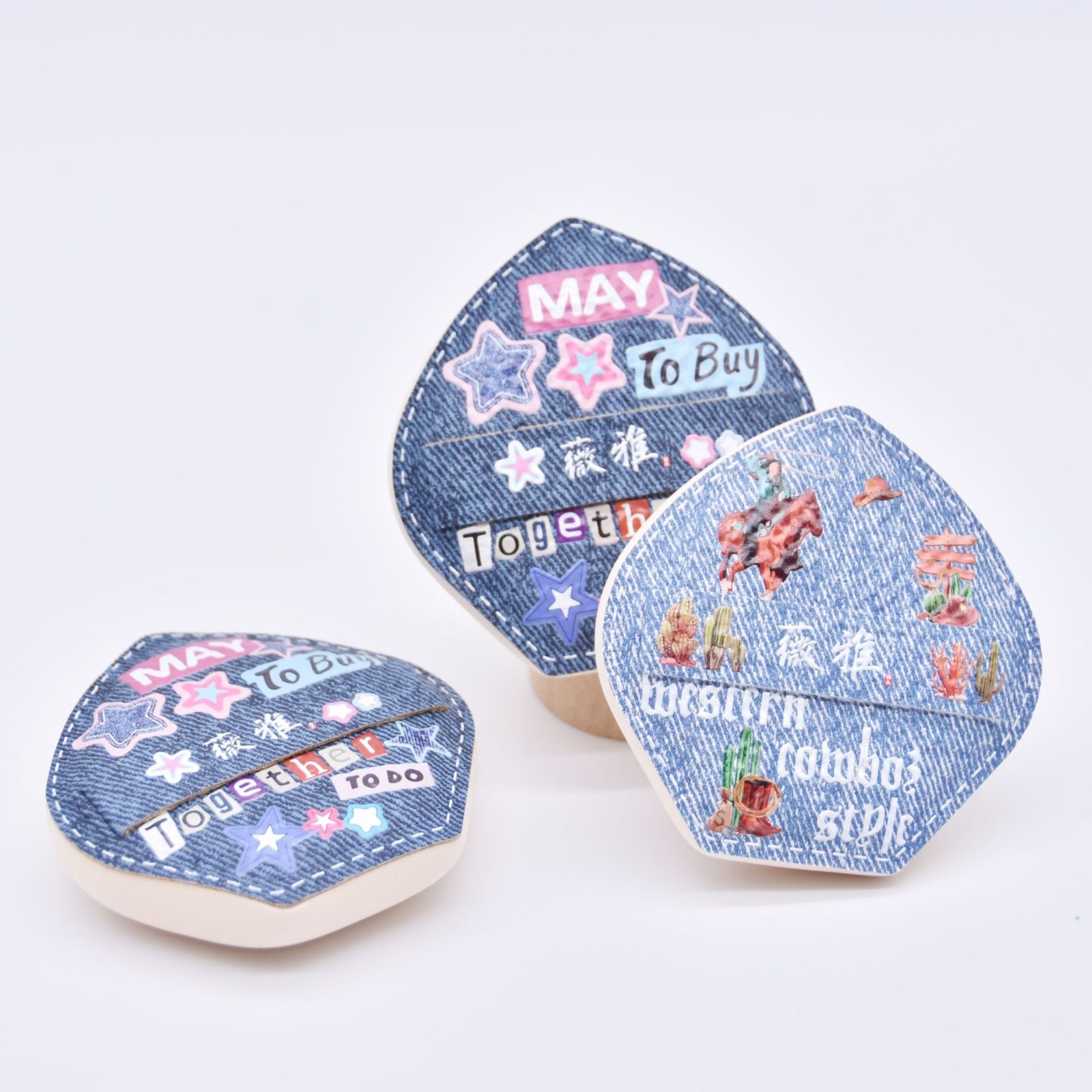 广州薇雅化妆用品有限公司发布的厂家定制丹宁牛仔皮棉花糖粉扑干湿两用不吃粉化妆粉扑图集库