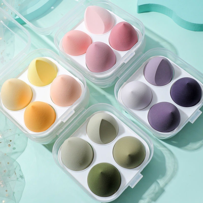 广州市爱如化妆用具有限公司发布的4格透明鸡蛋盒粉扑收纳 美妆蛋水滴斜切干湿两用泡水大厨房保鲜盒图集库